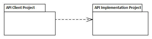 But isn't this just an academic excercise? One of the principles that appeared with Microservice designs was that a service is designed to be replaced (in contrast to the reuse that was promoted before). But how can you replace a service when all your API Clients depend on your implementation project?