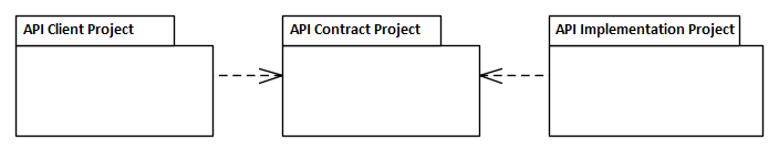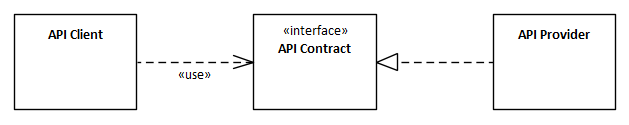 An API contract breaks the explicit dependency between an implementation by an API provider and the API clients as shown in Figure 1: All arrows, i.e., all types of dependencies point to the API contract. Thus, the API Client and the API Provider are as independent as possible because both depend on the contract and not on each other.
